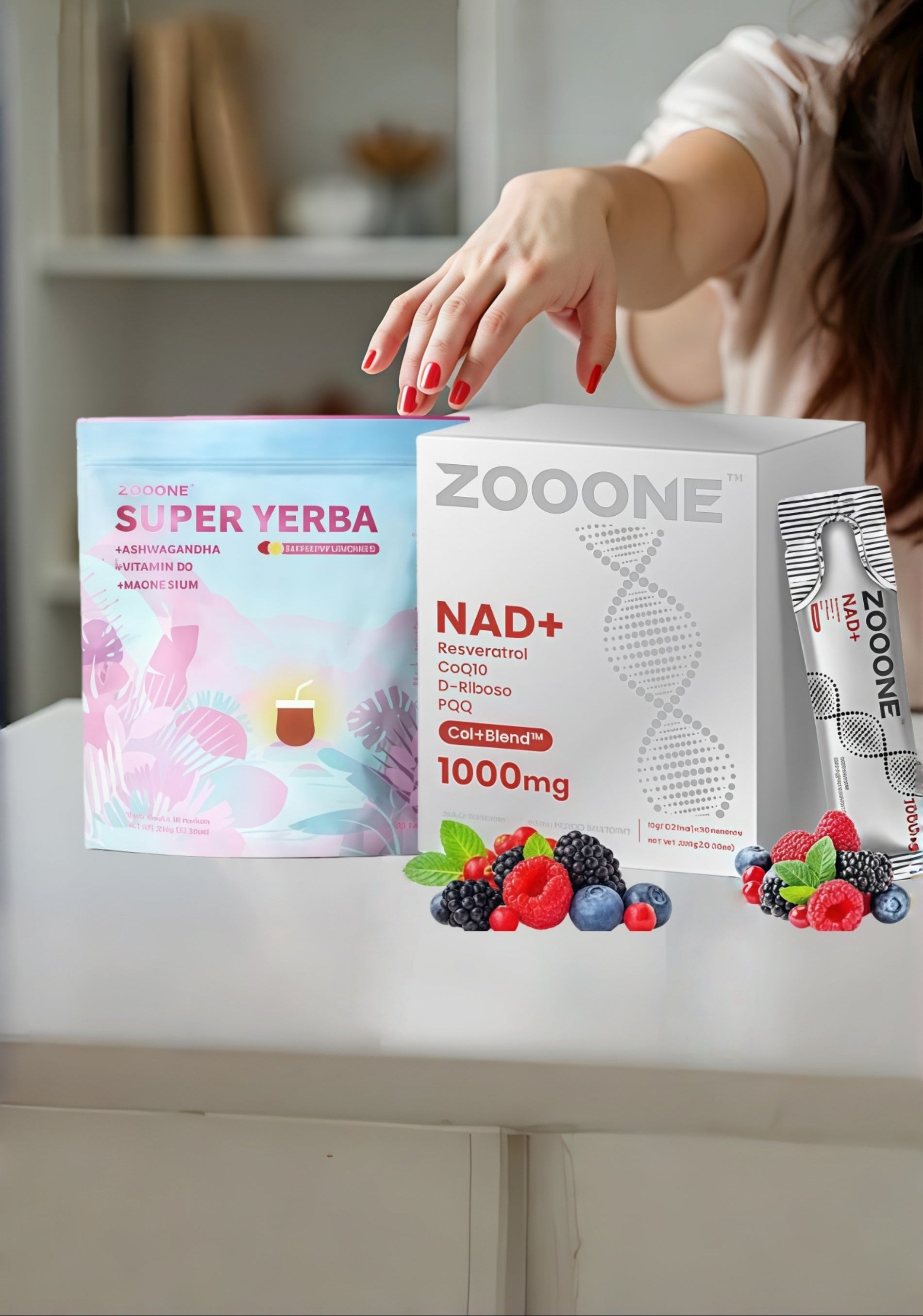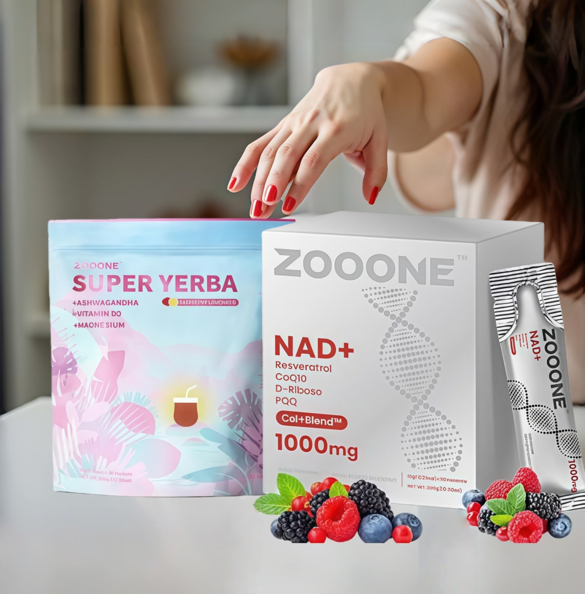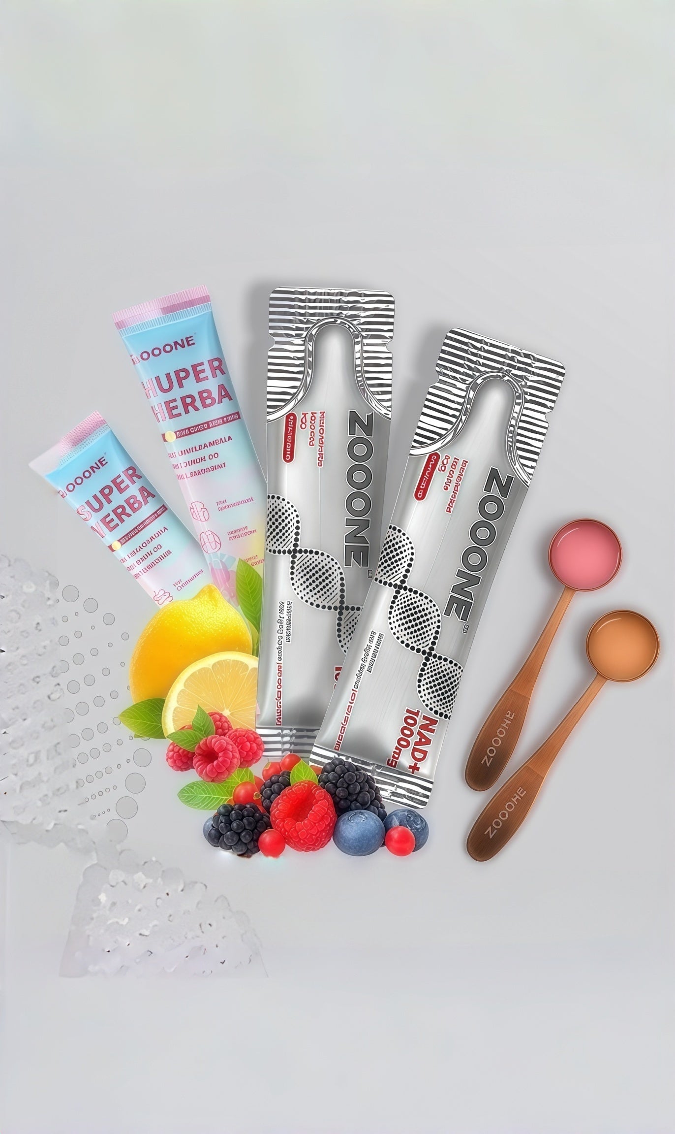 ZOOONE NR1000 is your daily defense against fatigue,brain fog, and visible signs of aging. With a science-backed dose of NAD+ precursors, it's designed torestore youthful energy, sharpen your mind, andsupport cellular repair-all in one delicious berry-flavored scoop.