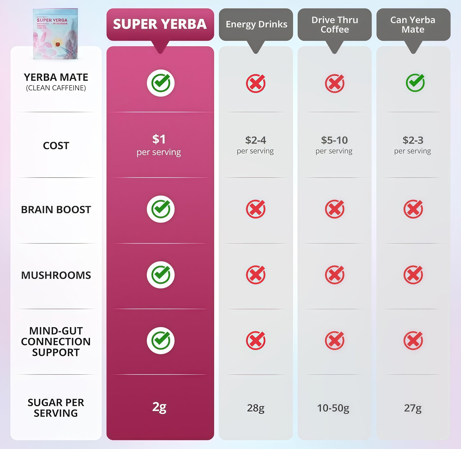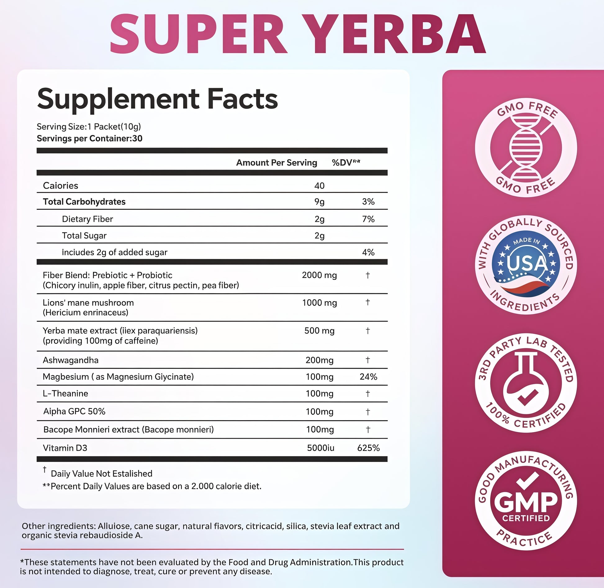 Zooone Super Yerba Mate Instant Powder doesn't just compete with other brands-it redefines whatinstant yerba mate can be by solving the biggest pain points users face with rivals: no more energycrashes from caffeine-overloaded options, no bitter or artificial flavors, no clumpy mixing or stalepowder, and no hidden sugars or fillers. lts unique combination of sustained, jitter-free energy,estaurant-worthy raspberry lemonade flavor, 10-second preparation, and freshness-locking individuapackets makes it the only choice for anyone who wants convenience without sacrificing quality, flavoror health. Whether you're tired of coffee crashes, bored of bland drinks, or frustrated by stale bulkpowder.
