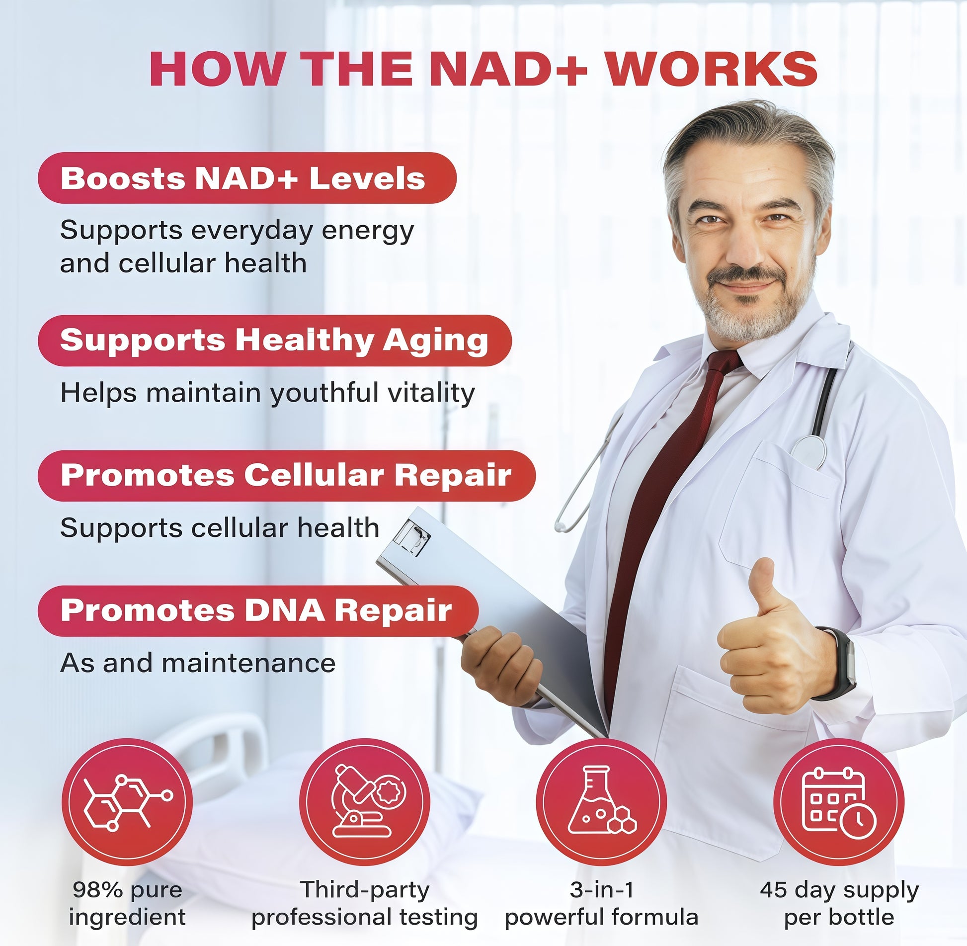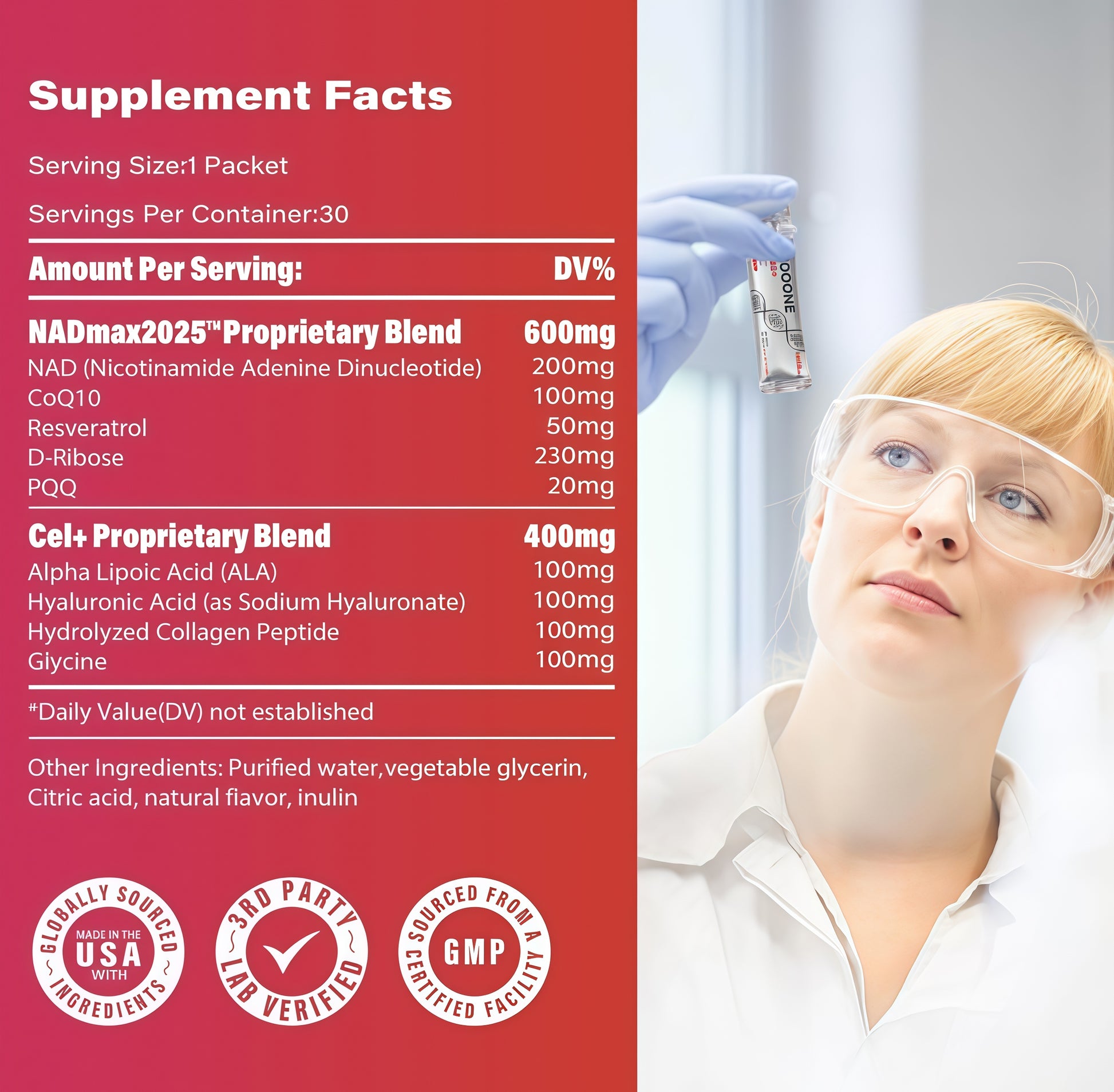 ZOOONE NR1000 uses Nicotinamide Riboside(NR)tonaturally increase NAD+-a compound your body relies onfor energy, metabolism,and youthful function. Whileothers use fillers or hype, we use pure, tested ingredientsthat actually work.